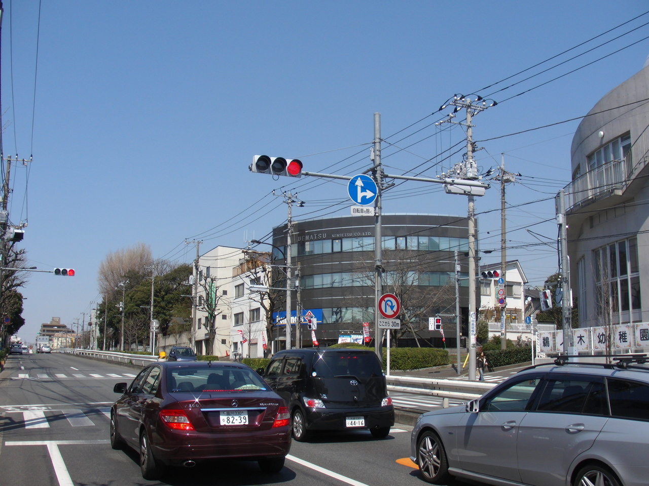 この交差点は信号無視が多いので確実に車が停車しているのを確認してからわたりましょう。